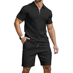 KUYIGO Men’s Polo Shirt and Shorts Set Summer Beach Outfits Fashion Casual Short Sleeve Polo Suit for Men 2 Piece Shorts Tracksuit Black X-Large