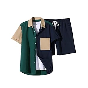 Floerns Men’s Two Piece Outfit Printed Shirt Top and Drawstring Waist Shorts Set Dark Green M