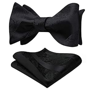 HISDERN Black Bow Ties for Men Self Tie Paisley Mens Bow Tie and Pocket Square Set Classic Business Formal Tuxedo Men’s Bowtie Handkerchief for Wedding Party