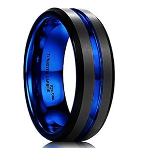 King Will Duo Mens 7mm Black Matte Finish Tungsten Carbide Ring Blue Beveled Edge Wedding Band(10)