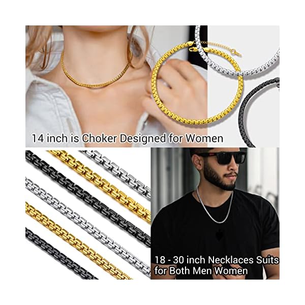 ♦♦ Size ♦♦ length: 14 inch-16 inch(36cm-41cm) Adjustable, width: 4mm. Very Sturdy and Durable Flat Box Chain Choker, Smooth Surface, Comfortable Wearing Feeling.