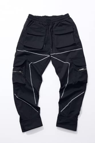 Track Pants for Men: These casual elastic waist pants feature reflective on the pants, although the reflections are not very bright, the design makes the whole pants look cool.
